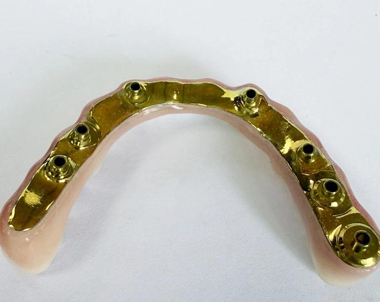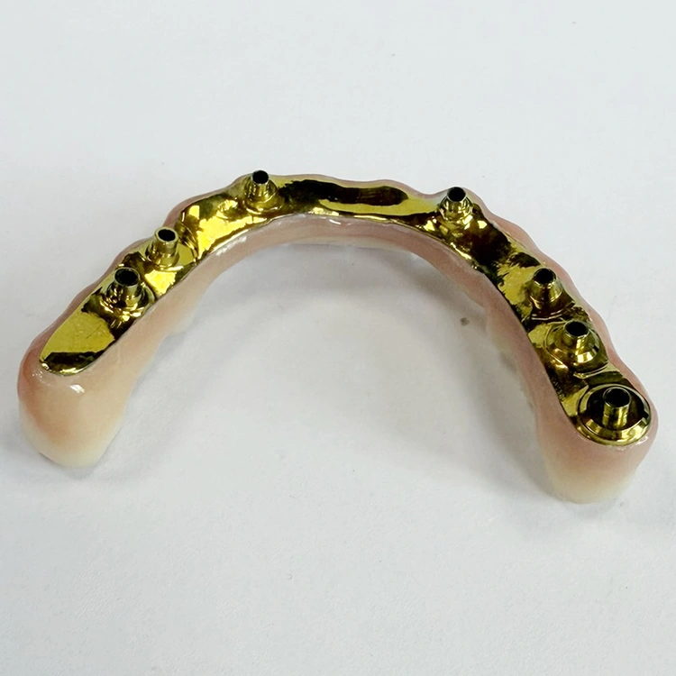 Teljes ívű protézis hibrid implantátum híd titán fogászati ​​rúdon, teljesen mart cirkónium és teljesen mart titán rúd esztétikus rózsaszín lágyszövettel a kínai fogászati ​​laborból WM Dental labor