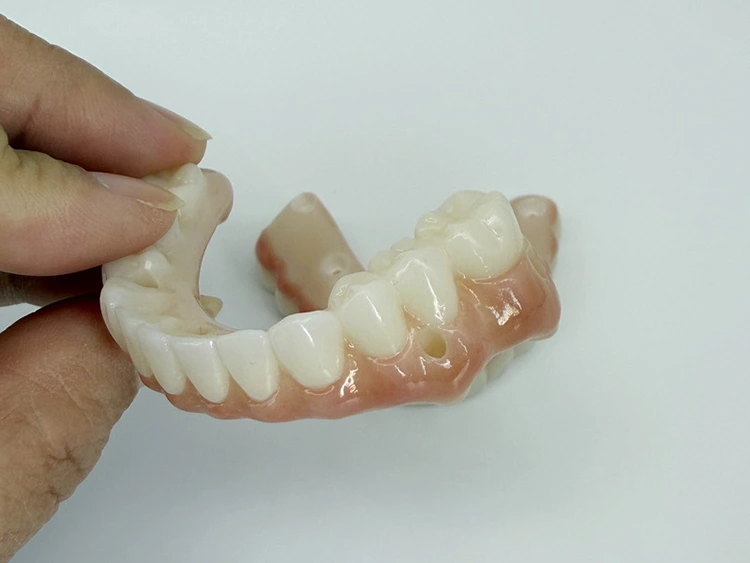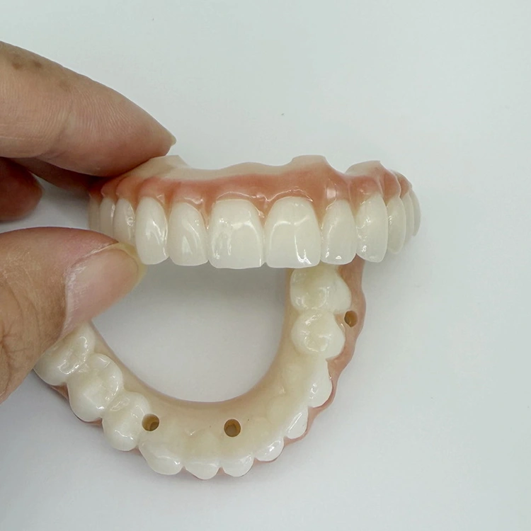 Teljes ívű protézis hibrid implantátum híd minden x hibrid teljes cirkónium híd kézzel készített rózsaszín porcelán esztétikus gumival, a kínai fogászati ​​labor WM fogászati ​​laboratóriuma, amely a legjobb megoldást nyújtja a teljes boltív implantátum cirkónium implantátum híd marására